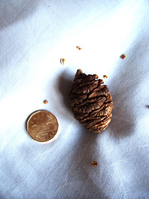 A few days later I noticed that the cone had began to open in the dry warmth of my home, and tiny, tiny seeds were falling out. I marveled at how one of the largest, and oldest living things on the planet could begin as a teeny speck that you would need a microscope to view thoroughly.