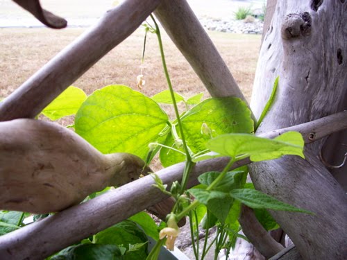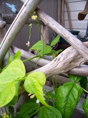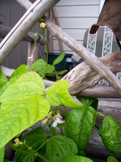 Sure we threw the handful of kidney beans from the kitchen into the soil late, and will be fortunate to harvest any dried beans. Although, here on the coast the growing season is long.