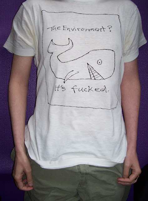 Just like the whale shirt, things are getting seriously cartoony. Surreal, looney tunes, and dystopian are a few words that come to mind. If we don't get serious about this, how will we help the environment get some much needed healing time?
