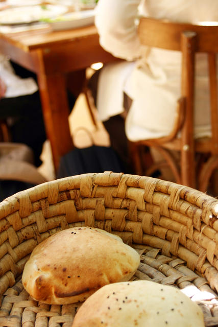 Today I am making pita bread to eat with Mediterranean dishes. Also known as Arab bread, pita is fun and easy to make. In the oven it puffs up into pillow-y perfection in about 5 minutes. Pita is great warm and fresh when ripped apart for dipping into hummus with olives. We will also use some to make pockets to fill with falafel, pickles, onions and lettuce.